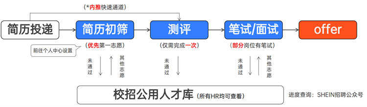 内部推荐:找到身边的SHEIN员工或校园大使,获取内推码填写投递,享简历免筛选特权