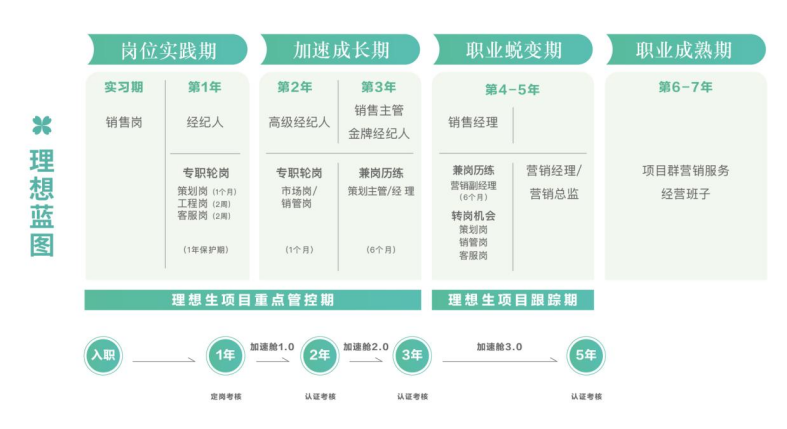 理想生”是面向国内外本科及以上院校,为培养绿城中国未来营销管理人才而打造的校招管培生项目,旨在甄选在社会实践和学生活动中表现卓越,“心有理想、温暖坚定”的高潜毕业生,通过专属培养通道,5年3阶段快速发展,成为公司营销管理人才。