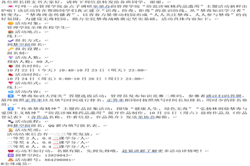 此次“防范涉麻精药品滥用”活动由金点子调研室社团主持操办,同学们通过线上答题和投稿的方式进行比赛,报名时间为10月22日至10月23日,活动时间为10月24日至10月26日。在活动举办前,管理学院金点子调研室社团积极宣传,通过多种途径在校园中广泛宣传,吸引了大量同学积极踊跃地参与此次活动。