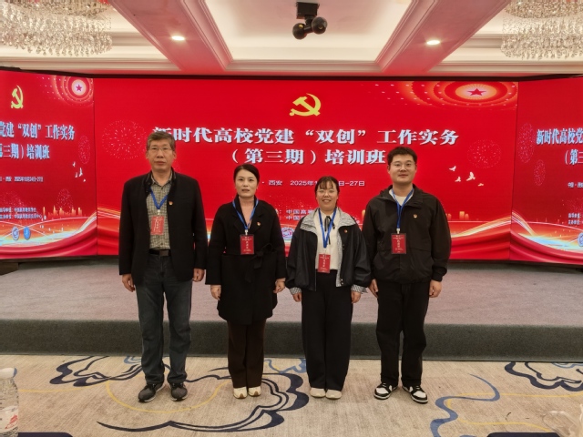 为深入学习贯彻新时代党的建设总要求,全面提升党建工作质量,推动党建与业务深度融合,2025年10月24日至27日,我院选派张佳、张立涛、张凤霞、国瑞坤四位教师,赴西安参加新时代高校党建“双创”工作实务培训班(第三期)。本次培训由中国高等教育学会指导、中国高等教育培训中心主办,旨在提升高校基层党组织“双创”工作水平,为教育强国建设筑牢组织保障。