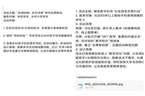 活动开始前,麦穗守望者协会积极通过网络平台进行宣传。参与者首先需围绕主题,在线提交一份具体、可行的志愿服务活动建议方案,内容须涵盖活动主题、服务对象及详细流程,并附上不少于50字的设计思路阐释。无论是关爱社区长者、助力环境保护,还是创新文化传播、提升校园服务,同学们均从自身视角出发,提出了诸多立足现实、富有温度与创想的金点子。同时,配套的问卷调查引导同学们系统梳理个人对志愿活动的认知、体验与期待,深化了思考层次。