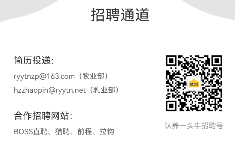更多校招信息请关注:认养一头牛驿站微信公众号/认养一头牛犊牛办小红书