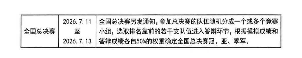 4.全国赛赛程分为校内赛、地区赛、全国半决赛、全国总决赛4个环节。校内赛由各学校参照全国赛规则自行进行选拔。有条件的省3(市)可以根据参赛院校情况决定是否组织省(市)赛,省(市)赛为交流